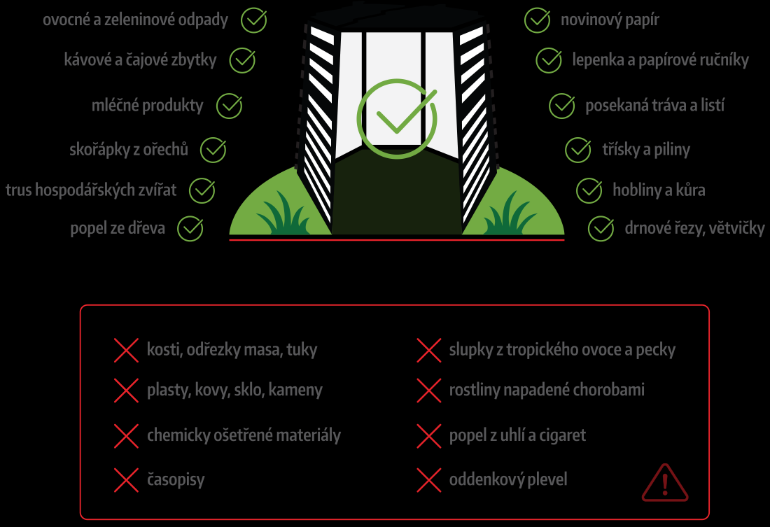 Pokud si nejste jistí, co do plastových kompostérů patří, odložte bioodpad raději do dřevěné ohrady, popř. do zelené bionádoby.